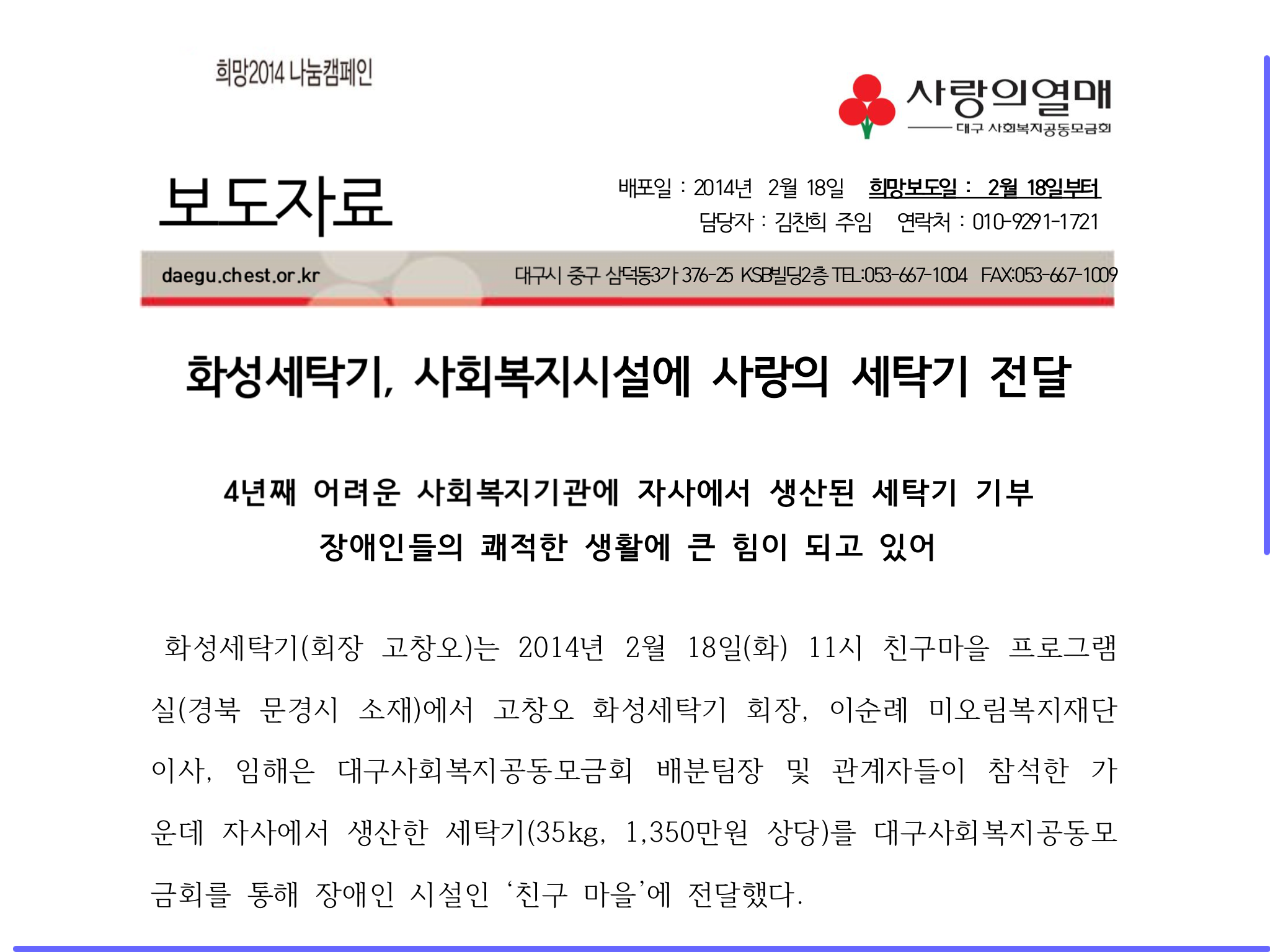 [미오림복지재단] 사랑의 세탁기,, 아름다운 세탁나라에 전달되다.