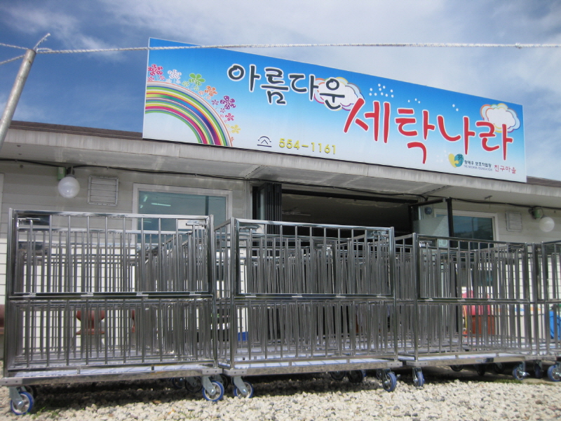 세탁물 수거 운반용 카트를 17대 지원 받았습니다.