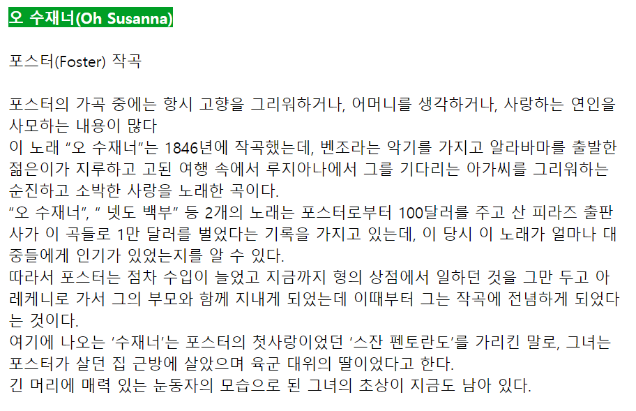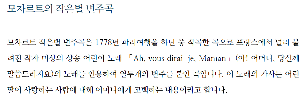 국내에서는 동요로 불리는 '작은별'과 연인들이 좋아하는 '오 수재너'를