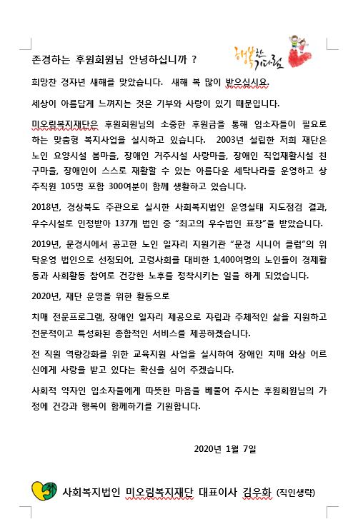 게시판 & 포토갤러리 > 자유게시판 > 201912 후원 감사편지