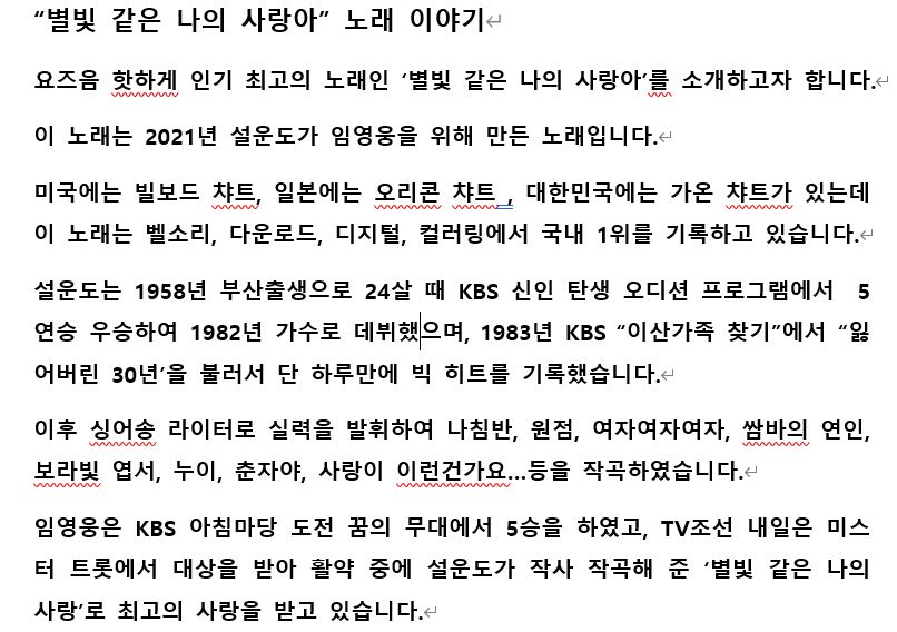 게시판 & 포토갤러리 > 자유게시판 > "별빛같은 나의 사랑아" 노래 이야기