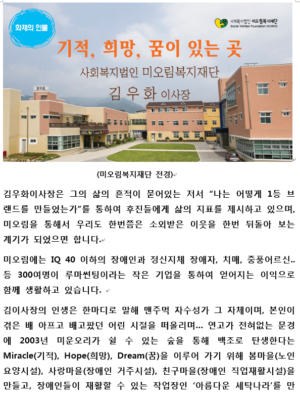 [미오림복지재단] 김우화 재단 이사장의 바램. 아이콘 작성일 : 16년06월21일 11:28