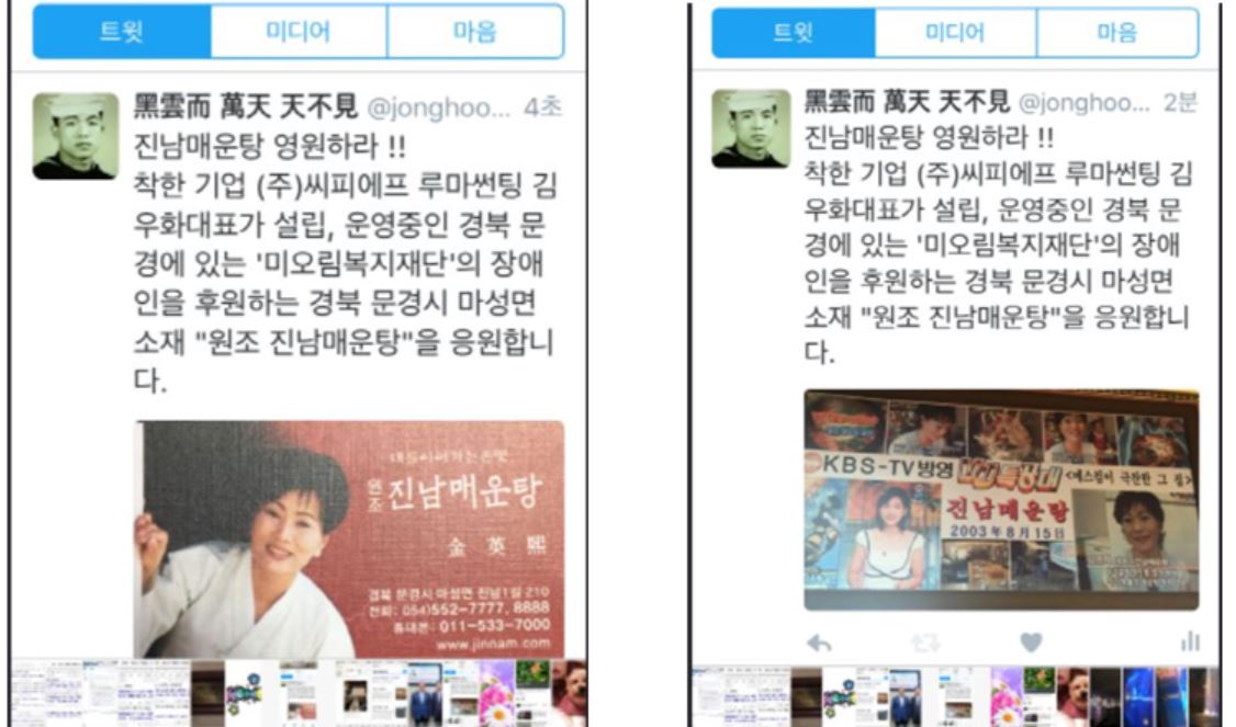 트윗으로  응원해야 할 후원인이나 감사를 드려야 할