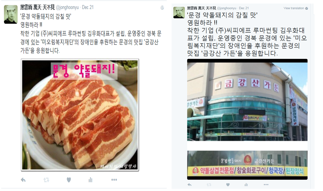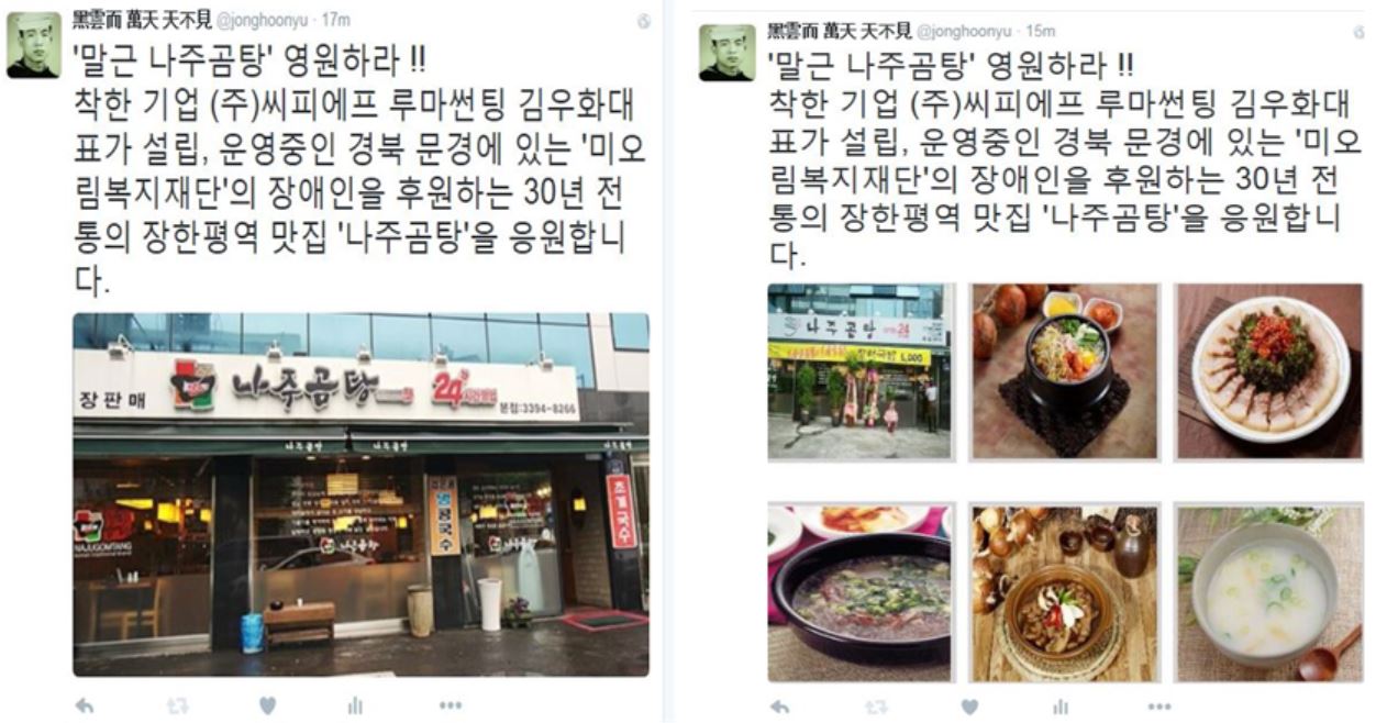 트윗으로 응원해야 할 후원인이나 감사를 드려야 할