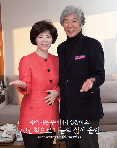 ) 73 법칙이 있다. 사회복지 사업을 하면서 스스로 세운 철학인데 내가 가진 것의 70%는 남에게 베풀고 나머지 30%는 내 위치나 내 분야에서 열심히 일해 남을 돕도록 노력한다는 것이다. 재산을 자식들에게 물려준다거나 승계에 대한 생각을 아직까지 해본 적이 없다. 딱히 물려줄 것이 남아 있을지 모르겠다. 대신 사회복지재단을 후손에 대물림해 보다 많은 사람들을 위해 봉사하는 것이 내가 선택한 73법칙이다. 재단은 공익재단이다. 앞으로 후원자가 3000명 정도 되면 자립할 수 있을 것으로본다. 그래서 더 투명하게 경영하려 한다.