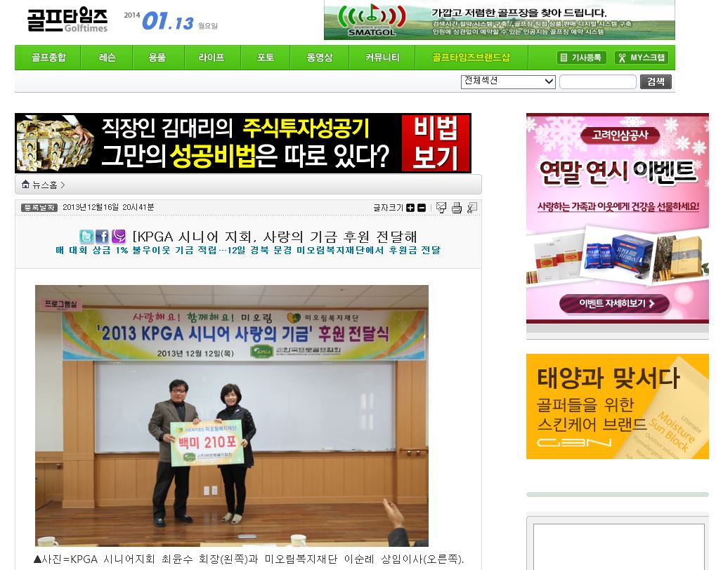 ( 2013.KPGA 시니어 사랑의 기금 후원 / 2013.12.12 자 기사)