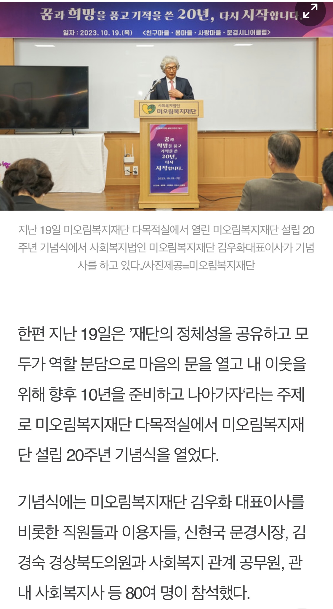 미오림 설립 20주년 기념 행사 홍보물.