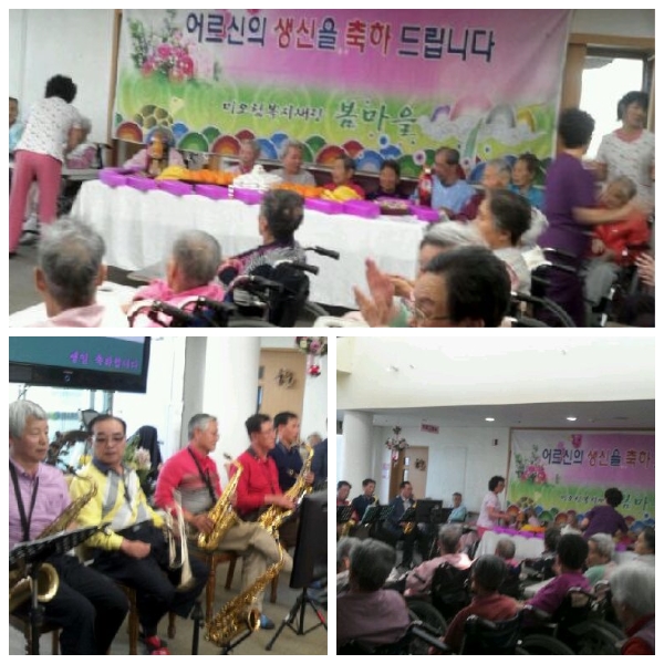 4월 생신을 맞으신 어르신들을 위해  점촌색소폰 동우회분들과 함께 생신잔치를 하였습니다.