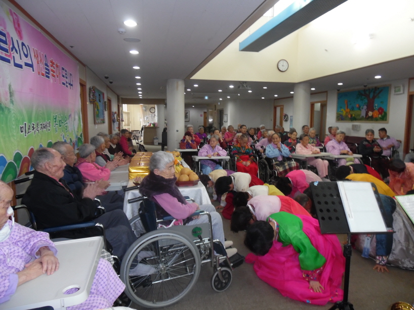 설날을 맞아 어르신들에게 큰절을 올리고 생신맞으신 어머님,아버님들의 생신잔치와 즐거운 놀이 한마당으로 즐거운 설날 전날이 이 되었습니다.