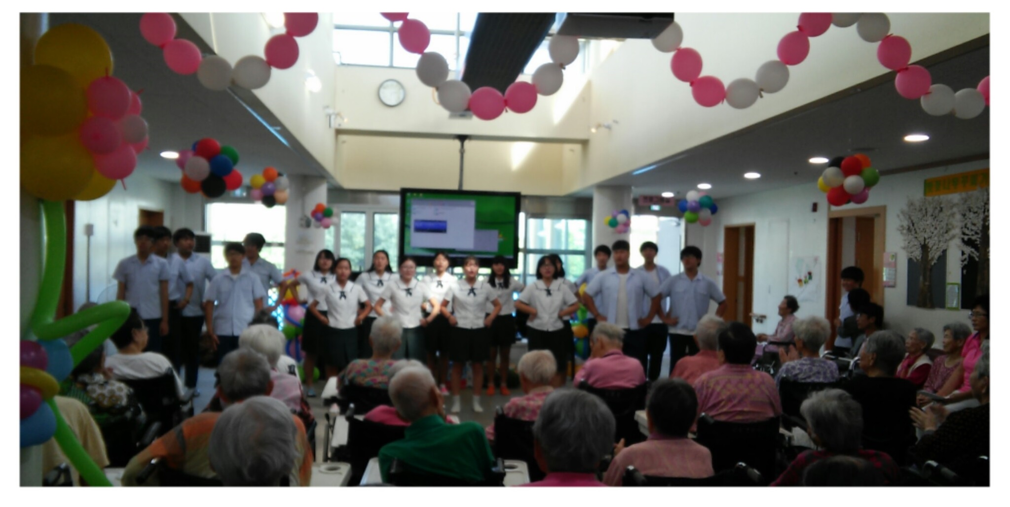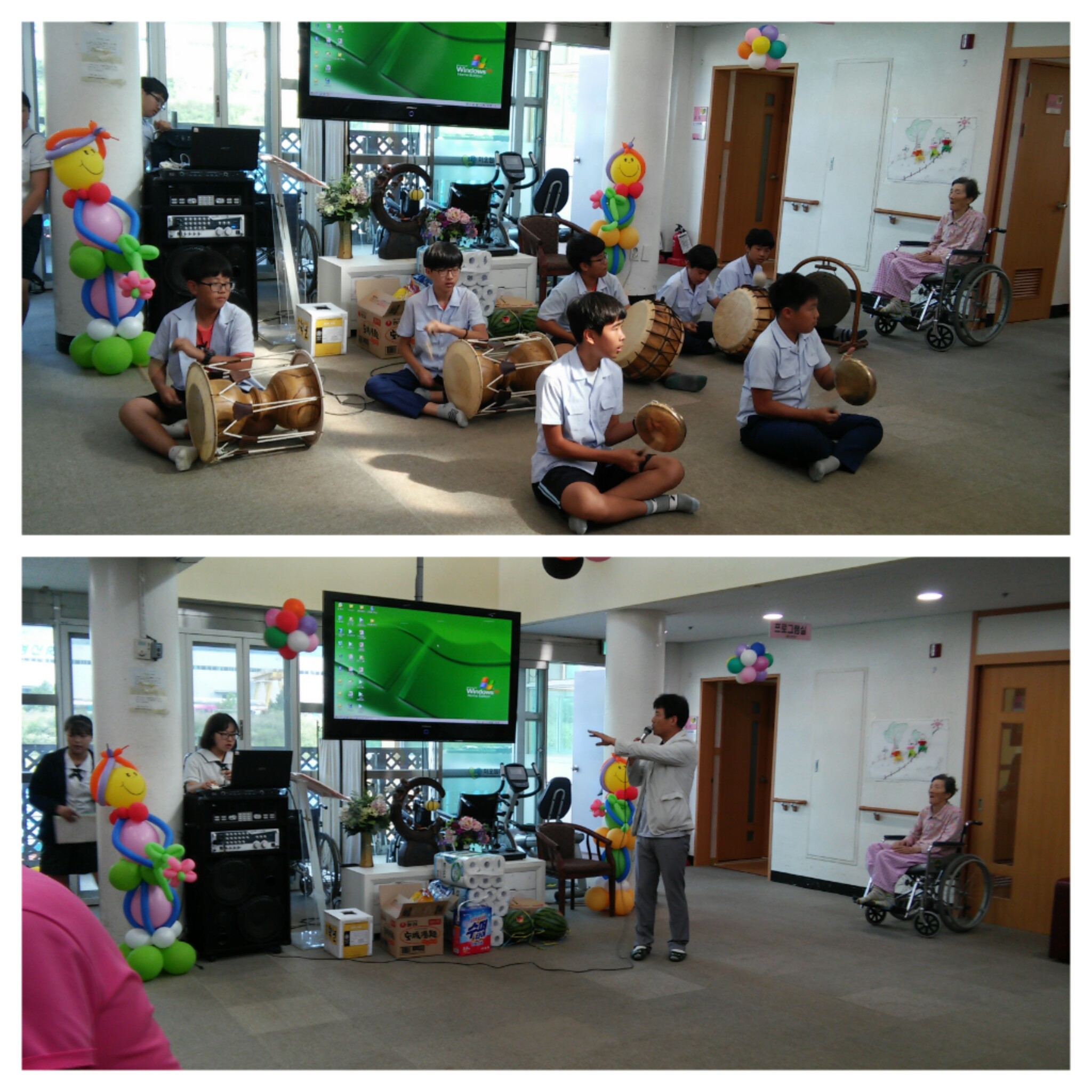 마성중학교학교 1,2,3학년 56명의 학생들이 따뜻한 마음으로 준비한 합창,댄스,풍물등 봄마을 어르신들앞에서 공연을 선보여 어르신들이 무척 즐거워 하셨습니다.