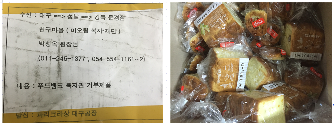 매주 수요일은 특별한 의미를 가진 날입니다. (주)파리크라상 대구공장(영남본부)에서 만들어진 샤니의 맛난 빵들이 미오림 식구들과 만나는 날이기 때문이지요. 파리크라상, 파리바게트, 샤니..를 어우르는 총괄회장인 SPC그룹의 허영인 회장 산하의 파리크라상 영남본부 본부장을 지냈던 박성옥(전 친구마을 원장)과의 인연으로 2006년부터 미오림에 빵을 후원하는 길이 만들어졌습니다. 자세한 내용은 '이야기 방'에서 만나보세요.