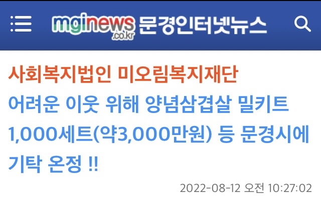 [미오림복지재단] 문경시에 양념삼겹살 밀키트 1,000세트 기탁.