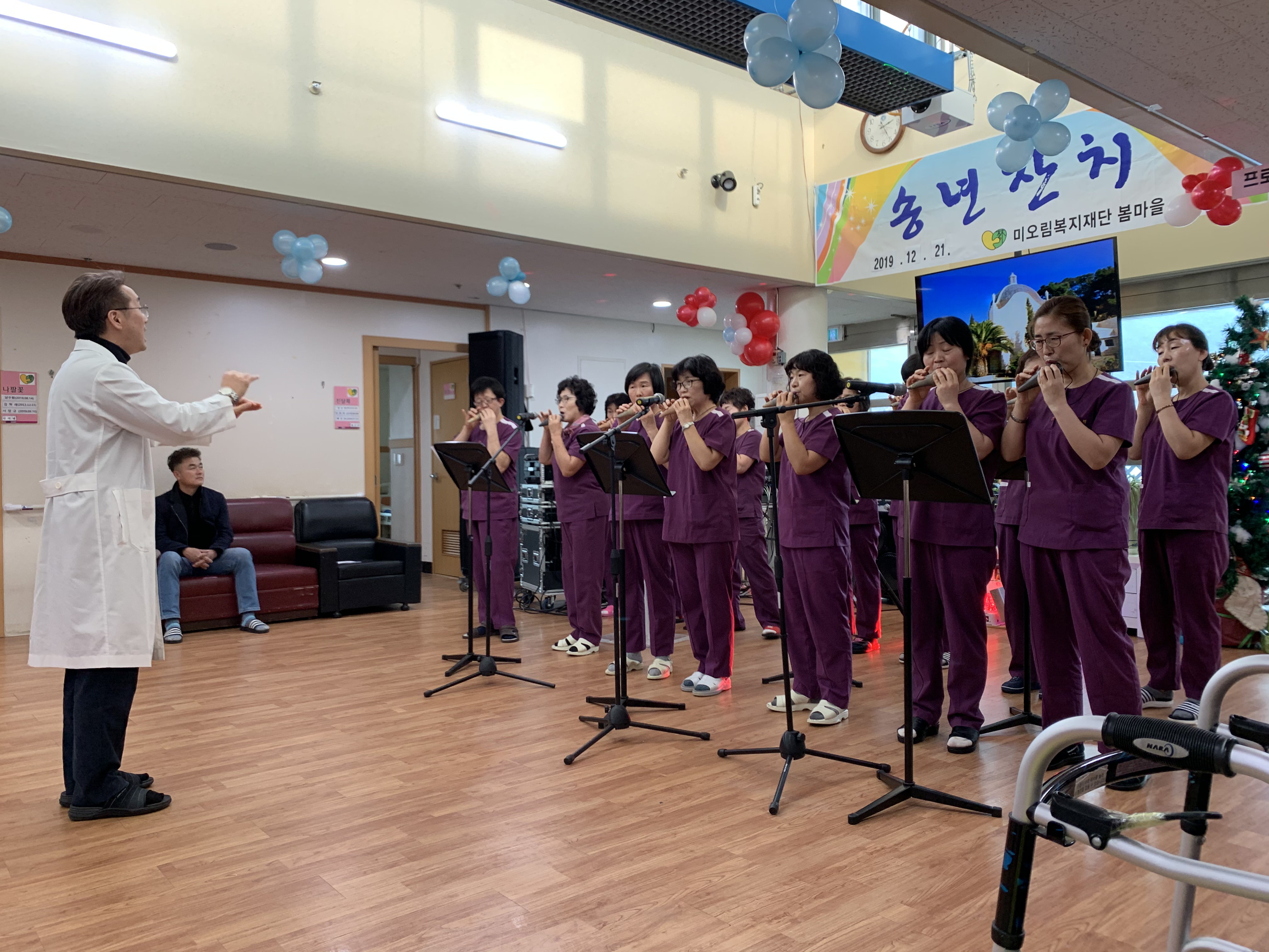 봄마을 원장의 인사말과 직원들의 오카리나 연주(시월의 어느 멋진날, 섬마을 선생님..등)