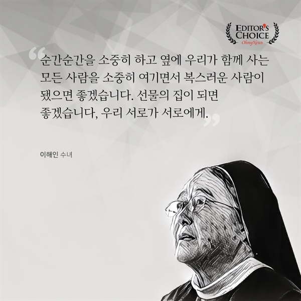 이해인 수녀가 2019년 한 해를 마무리하며 자신의 시 '가까운 행복'을 낭독한 후,