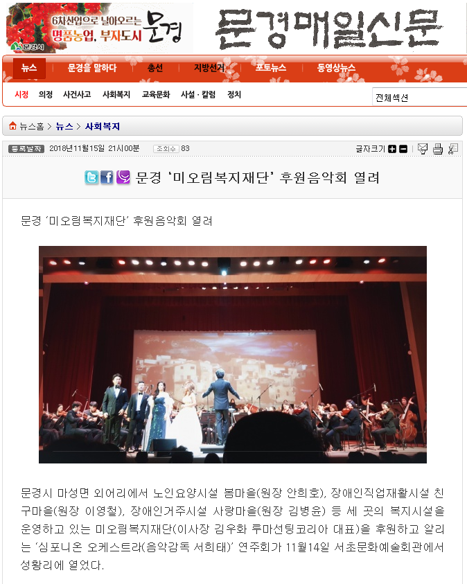 마음의 문을 열면 내 이웃이 보인다는 미오림복지재단 후원음악회를 축하드립니다.