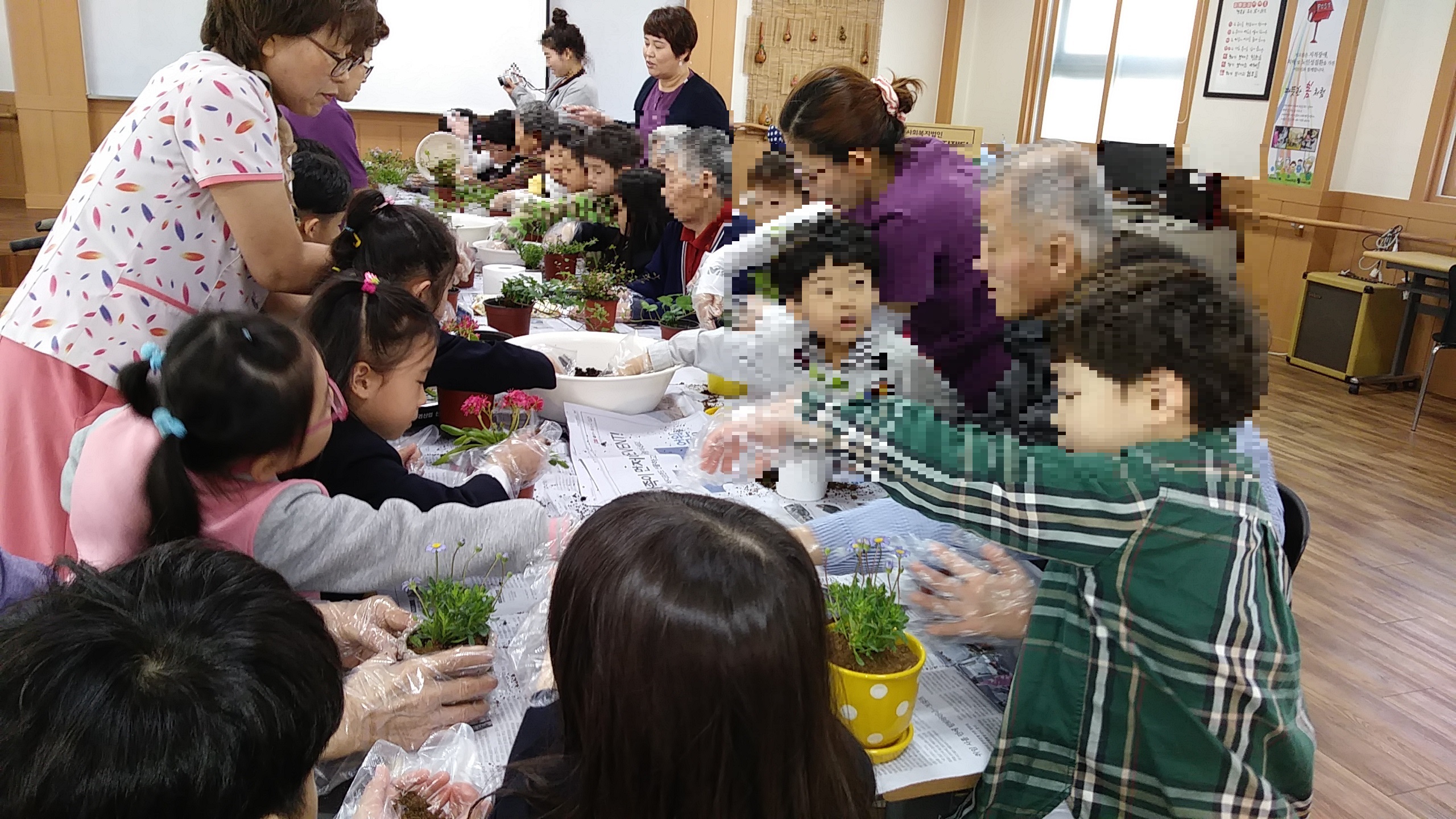 새싹유치원 원아들과 어르신들이 함께한 봄꽃 심기로 더욱더 따뜻한 봄을 만끽하는 즐거운 시간이었습니다.