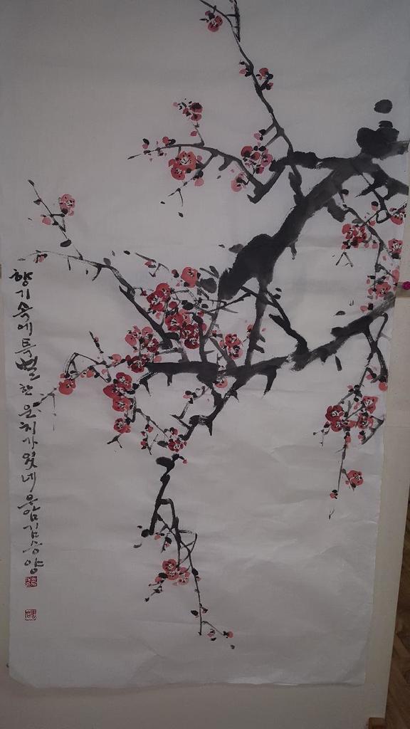 작품은 문인화인 "홍매"로 대한민국미술대전에 입선한 것입니다.