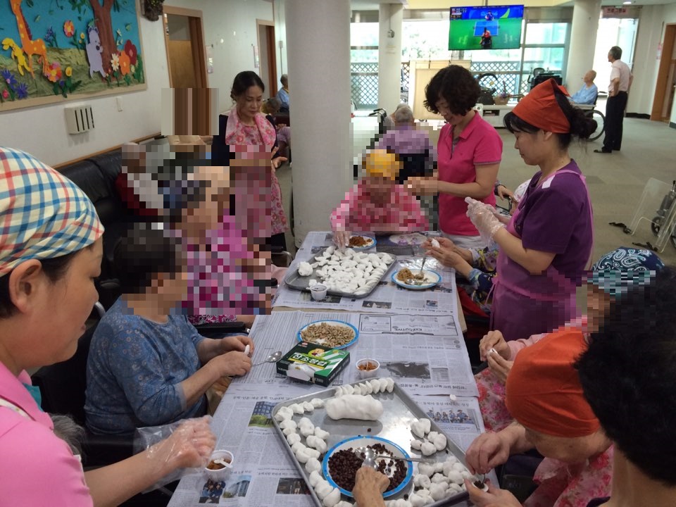 추석을 맞이 하여 어르신들과 직원들과 함께 송편을 빚고  맛있게 드시는 요리프로그램을 하였습니다.