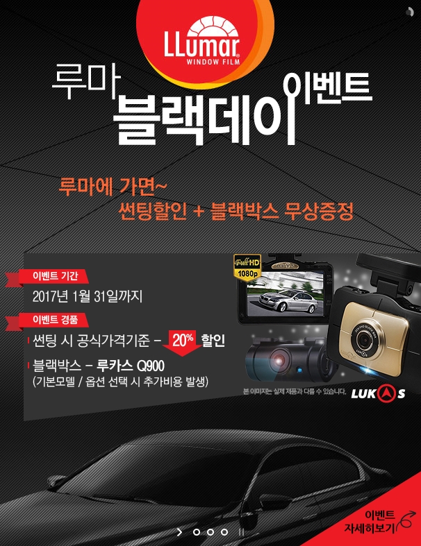 루마블랙데이 이벤트와 관련된 내용은 루마 홈페이지(www.llumar.co.kr)와루마 SNS(페이스북, 블로그)에서