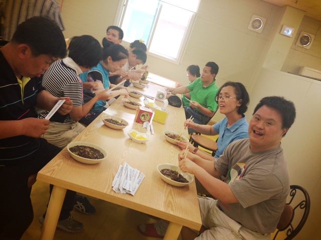 2014.6.27 미오림복지재단 친구마을분들이 아주 맛있는 자장면을 드셨습니다. 예수마을 자장면봉사단 더운데 맛있는 자장면 만들어주셔서 정말 감사합니다!!!!
