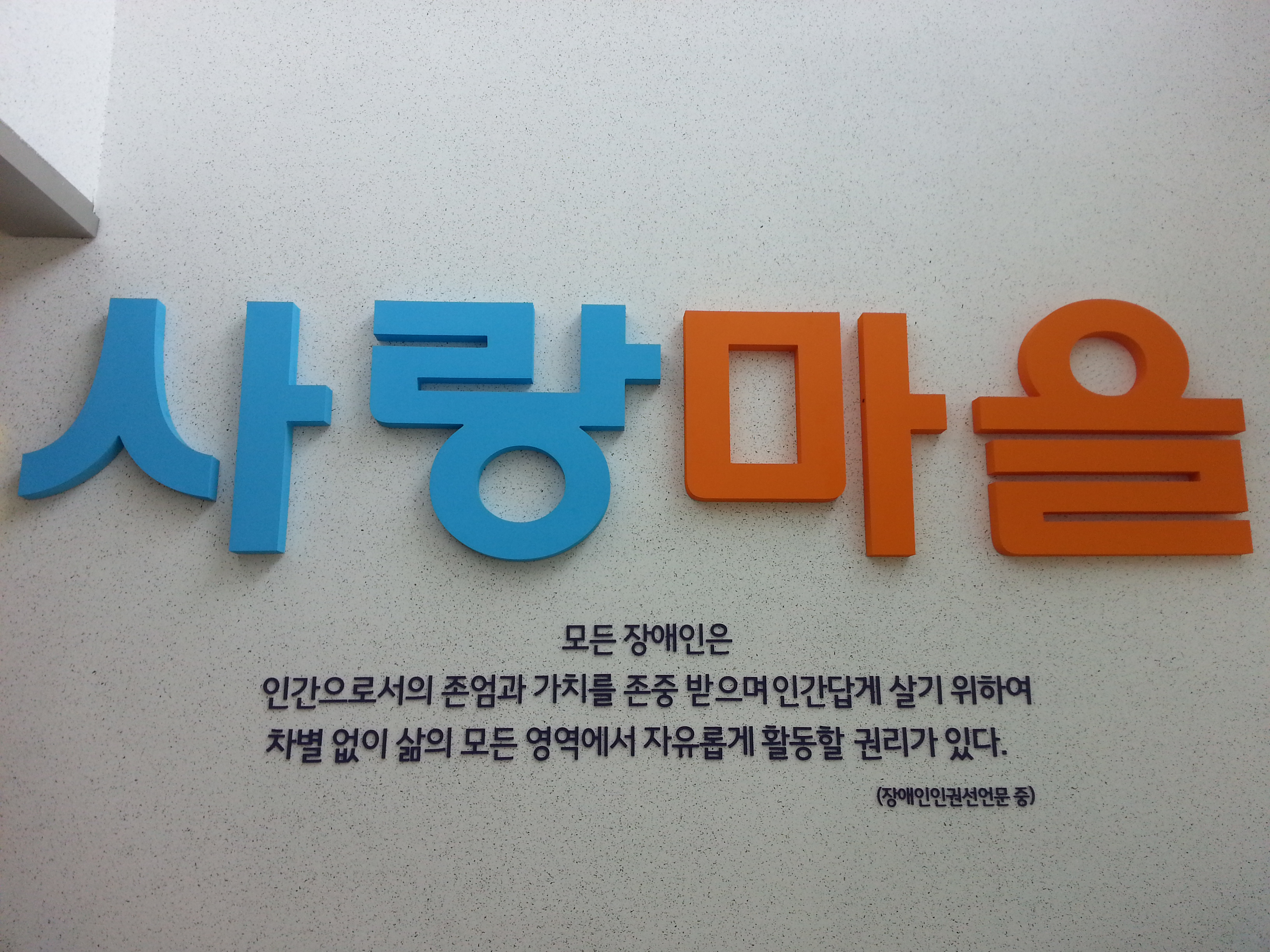 사랑마을 로비에 장애인인권선언문 전문 중 일부를 부착하였습니다.