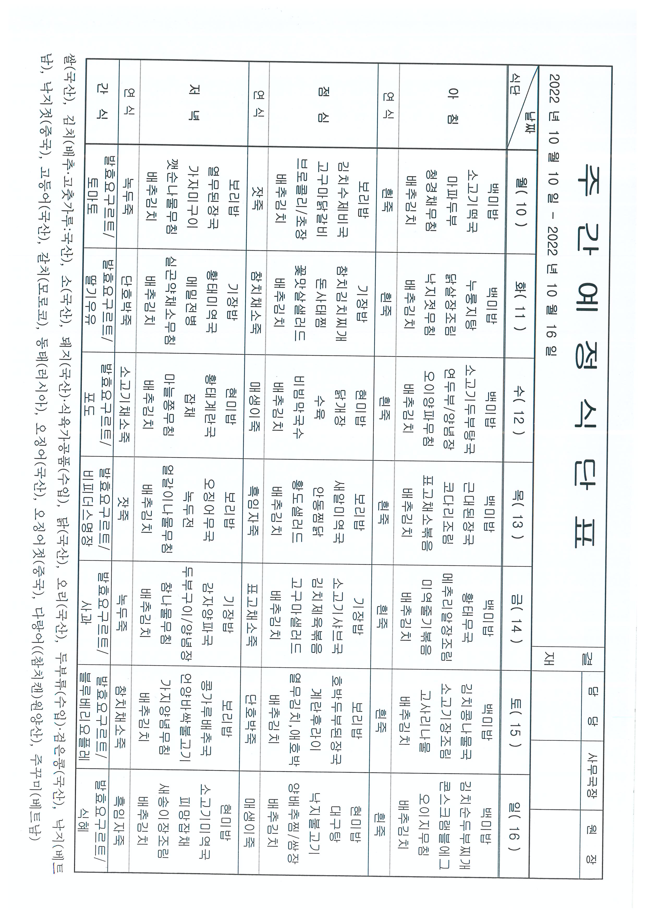[봄마을] 주간식단 |