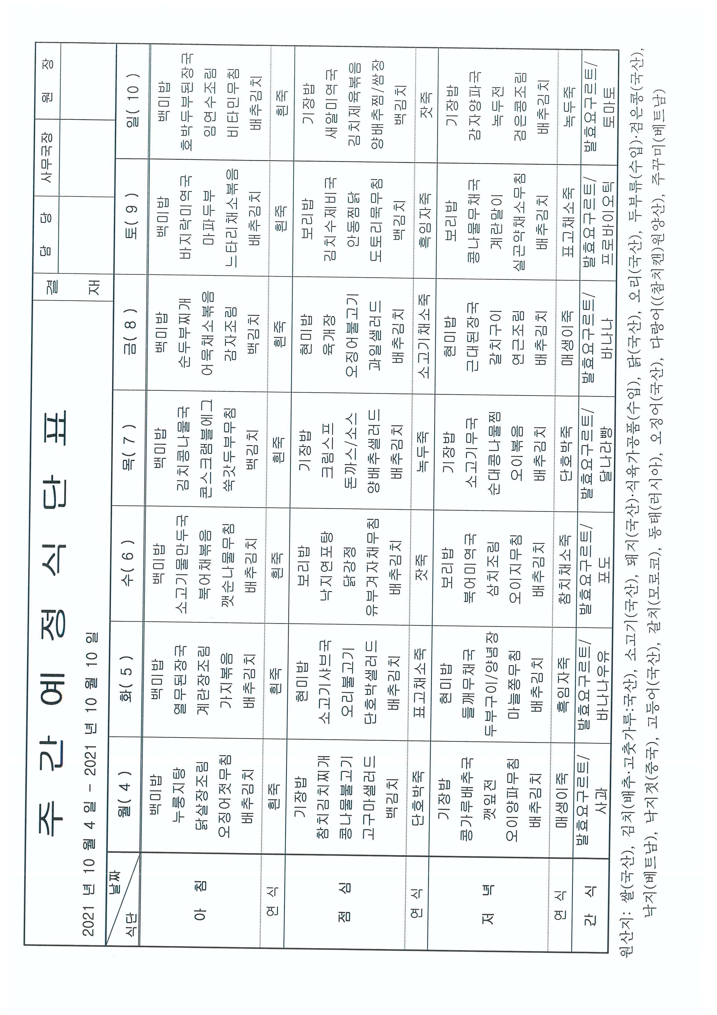[봄마을] 주간 식단 |