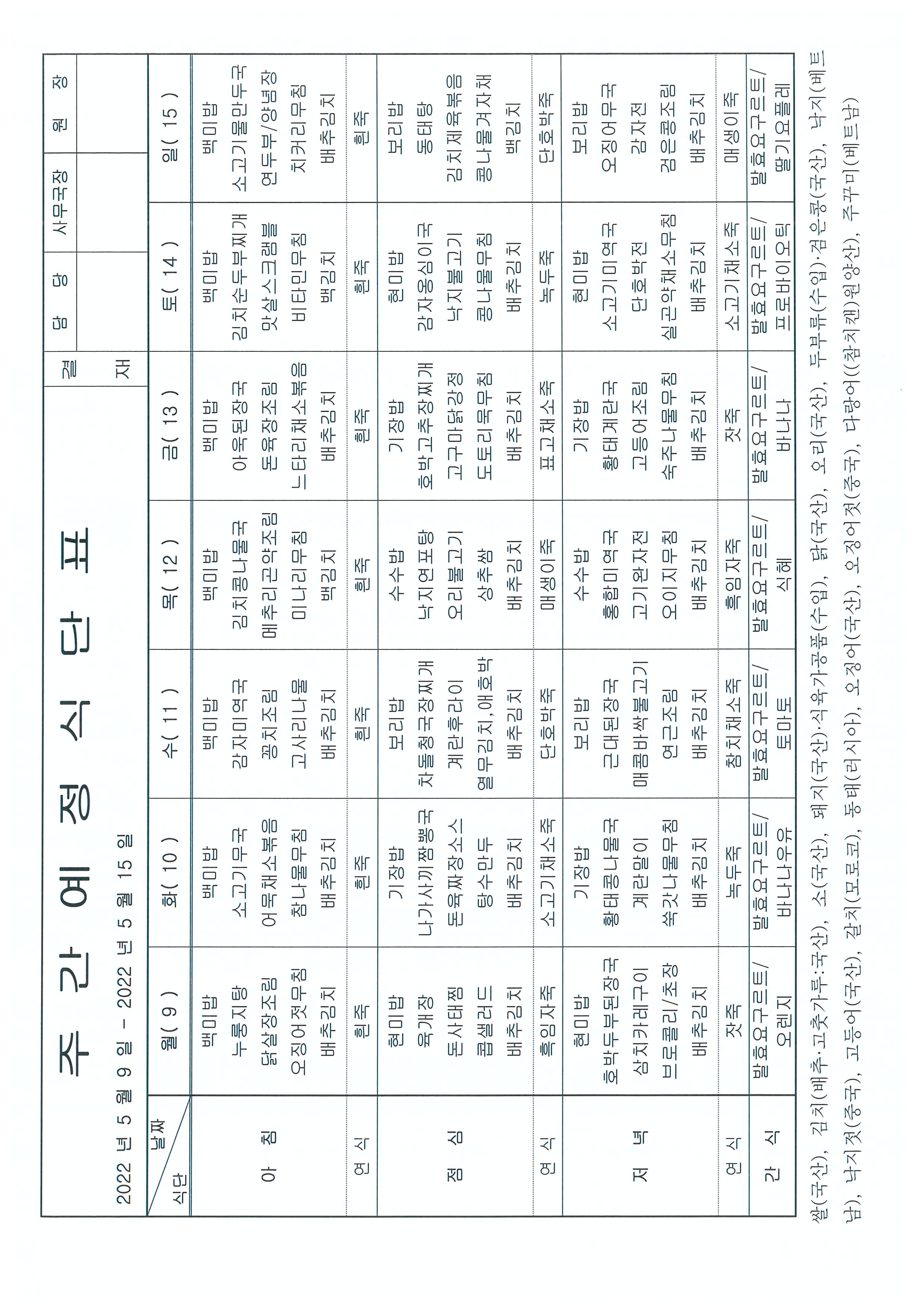 [봄마을] 주간 식단 |