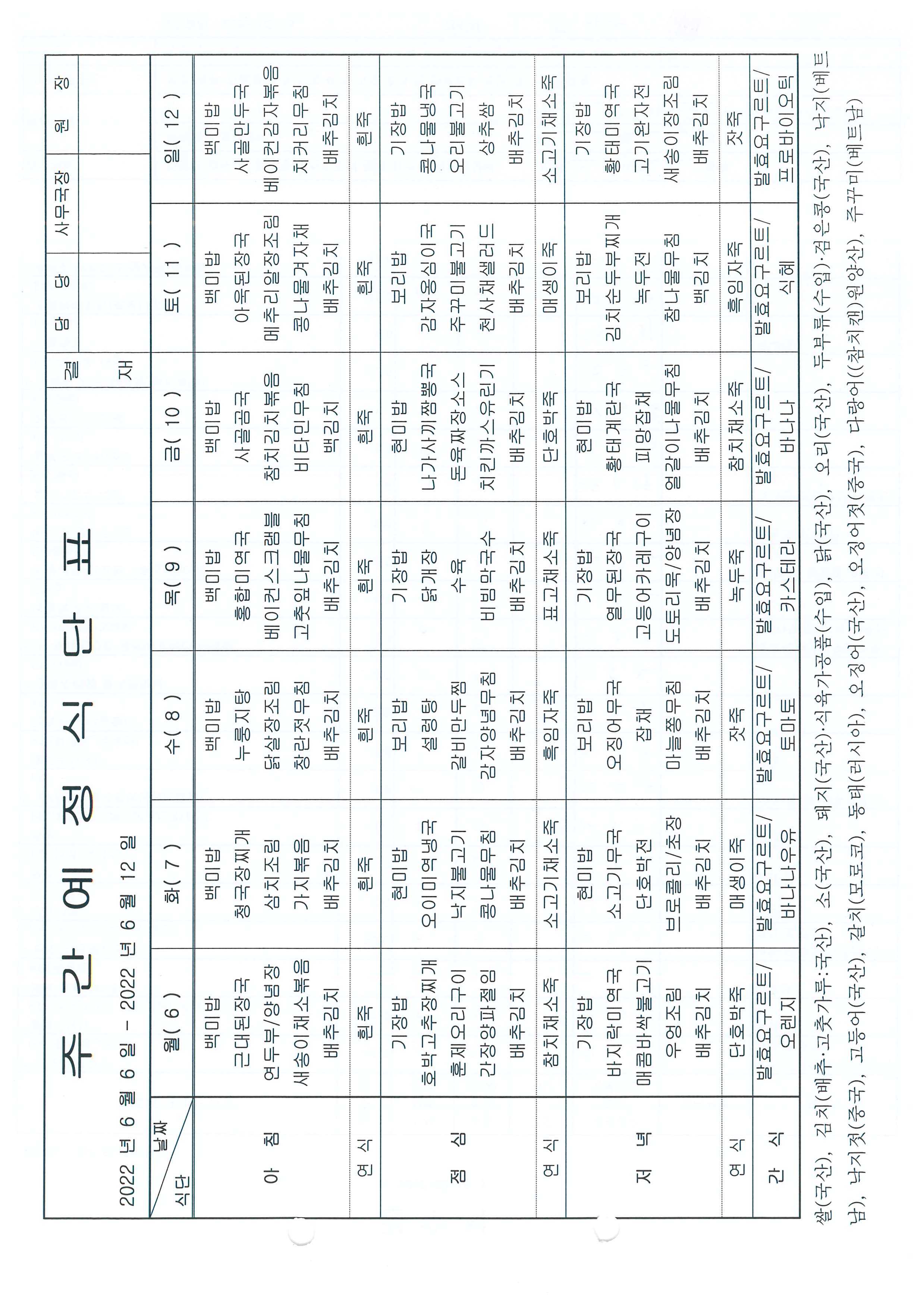 [봄마을] 주간 식단 |